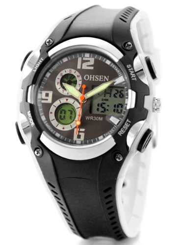 Détails sur le produitAlienwork Ohsen Analogique-Digital LCD Montre multifonction Rétroéclairage Caoutchouc noir noir