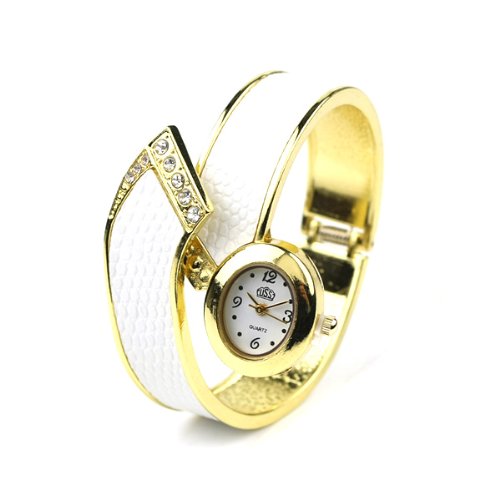 Détails sur le produitBestOfferBuy - Montre Femme à la Mode Bracelet Manchette Rigide en Peau de Serpent - Couleur : Blanc