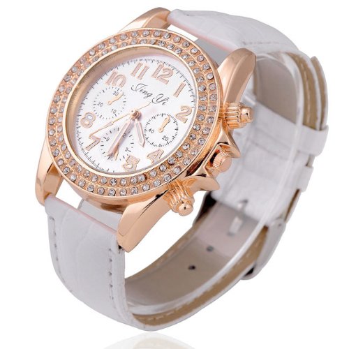 Description du produitbetter.dealz - Montre Quartz Dual Strass Cristal Bling Diamante Bracelet Faux PU Cuir Watch Wrist (Blanc)
