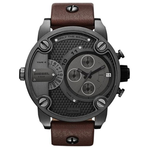 Cette montre mode de la marque Diesel Baby Daddy ref DZ7258 se caractérise par un boîtier rond en acier, un cadran gris, un verre minéral, et un bracelet en cuir marron . L'affichage de cette montre est analogique, chronographe (6 aiguilles), 2 fuseaux horaires, le mouvement est à quartz. Toutes les montres vendues sur GPerduMesAiguilles.com sont garanties 2ans.