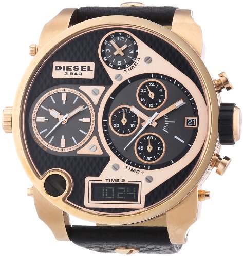 Montre anadigi / Affichage positifFonctions 4 fuseaux horaires, date, chronomètreBracelet en cuir véritable noirBoîtier rond en acier inoxydable poli et brosséPlacage rose goldEffet guilloché sur le boîtierCadran effet texturé noir avec détails rose ...Cetteontre Homme affirme son caractère Mode. Son boîtier est en Acier inoxydable poli et brossé de couleur Rose gold. Le fond du cadran est Noir et rose gold. Son bracelet est en Cuir et sa couleur est Noir. Ceodèle est étanche : 3. Son affichage est Analogique. Elle est équipée d'unouvement Quartz. Elle bénéficie d'une garantie internationale de 2 ans et est présentée dans l'écrin DIESEL.