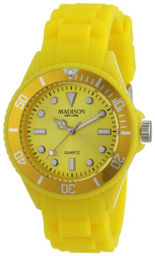 Détails du produitMadison New York - SL4167J - Montre Mixte - Quartz Analogique - Cadran Jaune - Bracelet Silicone Jaune