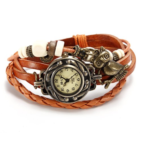 Description du produitMontre Bracelet Hibou Chouette PU Cuir Quartz Tressé Rétro Bijoux Femme Watch