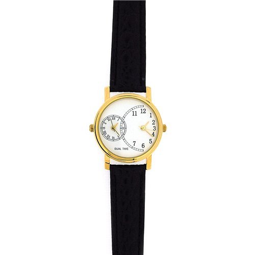 Détails sur le produitMontre Femmes Double Fuseau Horaire Ton or Bracelet Cuir Noir GOTW90