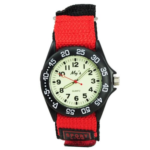Détails du produitMontre Sport Rouge Pour Enfant, Ecolier En Bande Nylon Tissé et Velcro Lumineuse