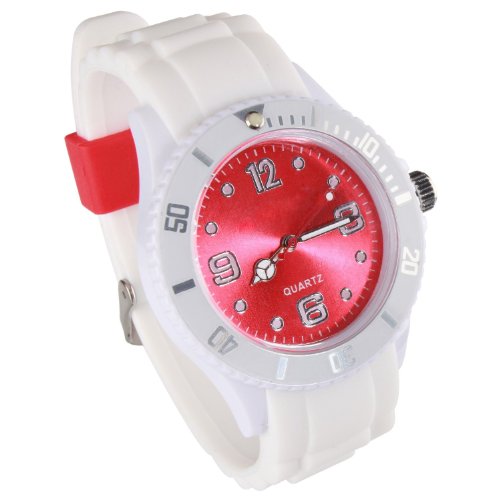Description du produitMontres couleurs tendances - MIXTES - 24 COLORIS ET PLUSIEURS TAILLES - Pochette cadeau LovaLuna offerte - Par LovaLunaTM - Blanc fond rouge Taille S (cadran 3,8 cm)