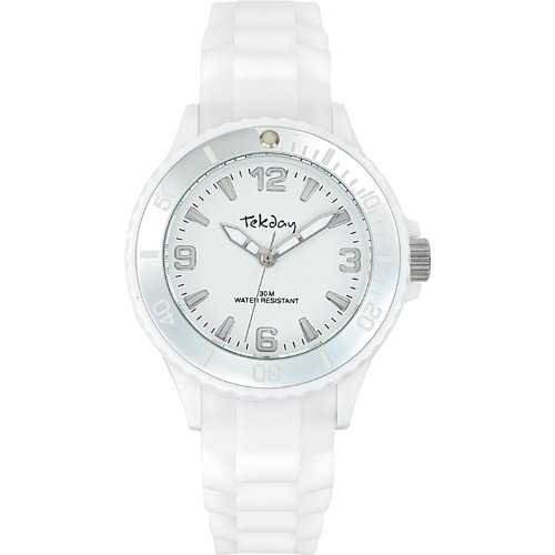 Description du produitTekday - 652923 - Montre Mixte - Quartz Analogique - Cadran Blanc - Bracelet Silicone Blanc