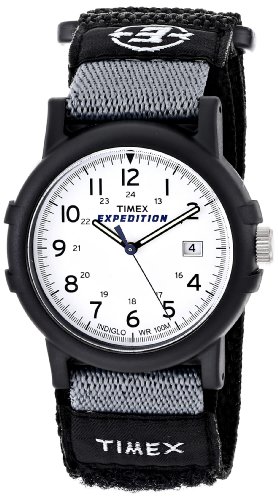 Boîtier- Matérial de la Boîtier: Matière Plastique- Forme de la Boîtier: Rond- Lunette en: Plastique- Verre: Plastique- Couleur de la Boîte: Blanc- Fond: Fond en Acier Inoxydable Mouvement- Complications: -- Type d'Écran de Visualisation: Heures, Minutes, Secondes- Mouvement: Quartz - Style du Cadran: Avec illumination de fond- Éclairé: fluorescent (vert)- Couleur du Cadran: Blanc Bracelet- Couleur du Bracelet: Noir- Fermoir: Velcro- Matérial du Bracelet: Nylon / Cuir Autres Détails- Produit: Montre- Hersteller: Timex Expedition- Modèle: Camper- Caractéristique Spéciale: Illumination Indiglo- Logo sur: Cadran, Boucle, Verso- Garantie: ...