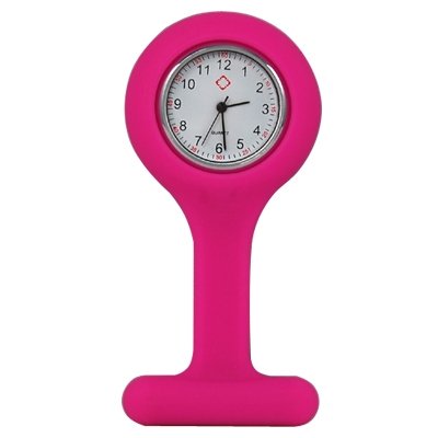 Montre à gousset d'infirmière en silicone avec broche - rose foncéCe produit pratique est idéal pour les infirmières et autres professionnels de la santé tels que les vétérinaires, les esthéticiens etc., métiers où l'hygiène prime et où le port d'une montre-bracelet se révèle inadapté.